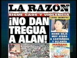 Cuando Castañeda estaba primero en la última encuesta de la Universidad Católica, ocupó un titular, en el diario "La República", mientras el diario "La razón" no mencionaba la noticia. Cuando Keiko Fujimori obtiene el primer lugar en la encuesta de cpi, "La razón"pone el titular: “¡Nadie para a Keiko! Hija de expresidente Fujimori lidera de nuevo las encuestas a nivel nacional." Un breve comentario:las diferencias entre Castañeda y Keiko son mínimas, las fechas entre una y otra encuesta es corta, por tanto, esas diferencias pueden verso como un empate con criterios estadísticos. Por otra parte, si se ve las encuestas desde que surge el aluvión Keiko, no sube mas bien baja unos puntos, permanecen no esta en ascenso. La expresión lidera las encuestas es inapropiada, no puede liderar encuestas, se lidera personas, se lideras partidos, no a un indicar estadístico de posicionamiento. En síntesis, cada periódico pone titulares de acuerdo a sus expectativas, no comprenden ni creo van a comprender los fenómenos políticos en el Perú.